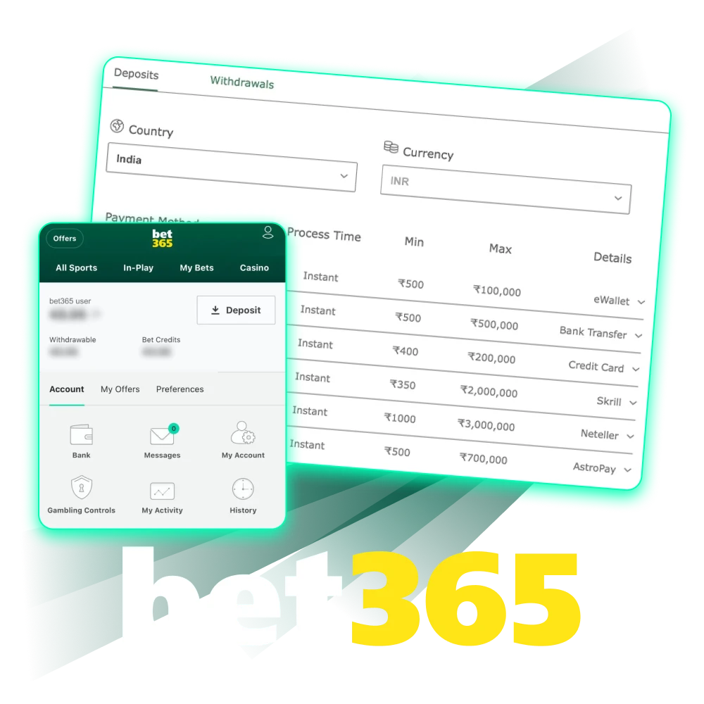 Bet365 offers a seamless and secure deposit process with multiple payment options tailored for Indian users. Most deposits are processed instantly, ensuring quick access to funds for uninterrupted gaming. The platform provides flexible deposit limits and supports various banking methods, from UPI to cryptocurrencies. If any issues arise, Bet365’s customer support is available 24/7 to assist users.